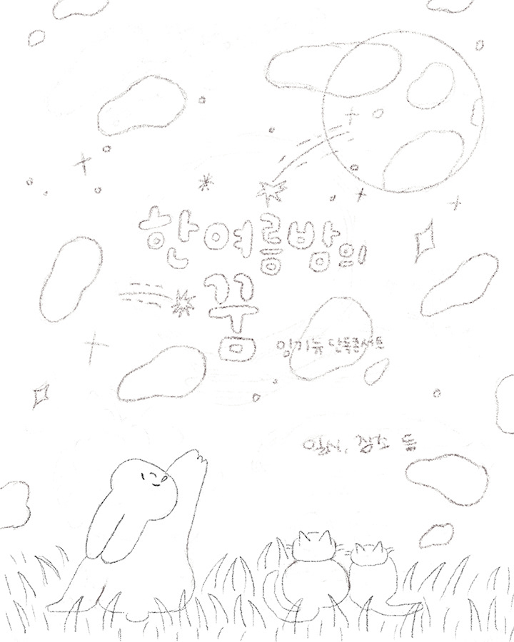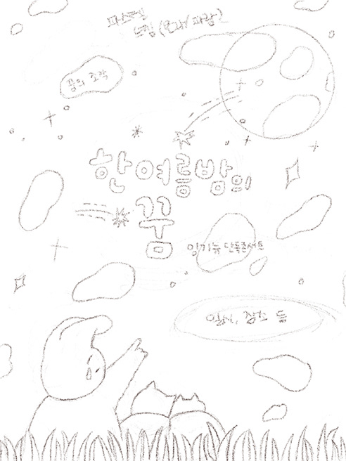 ▲스케치 초반 모습(위) / 최종 스케치(아래)