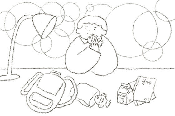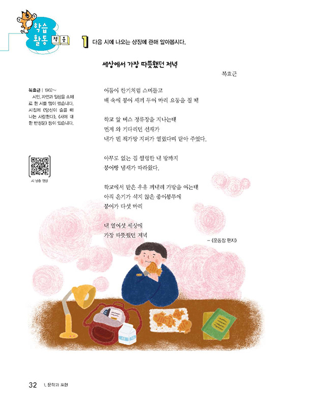 ▲천재교과서 중학국어 개정판 속 동시 <세상에서 가장 따뜻했던 저녁> 삽화 작업