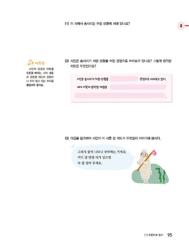▲천재교과서 중학국어 개정판 속 동시 <송사리> 삽화 작업