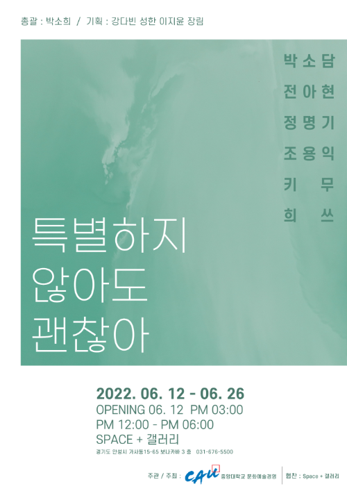 2022년 6월 12일부터 6월 26일까지 안성 SPACE + 갤러리에서 열렸던 '특별하지 않아도 괜찮아' 단체전입니다. 디지털 그림 5종을 전시했습니다.